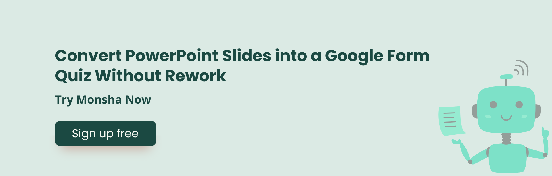 Here’s exactly how to convert PowerPoint slides into a Google Forms quiz using Monsha.