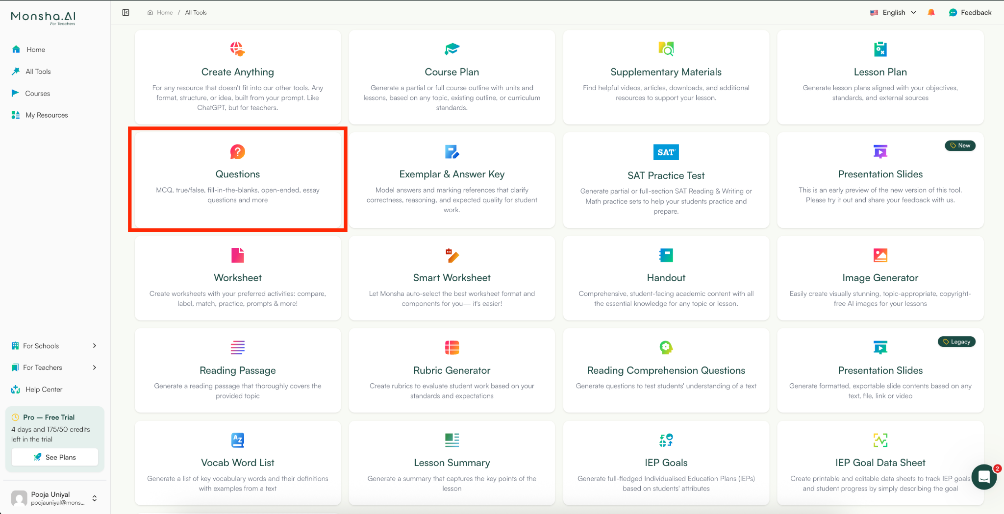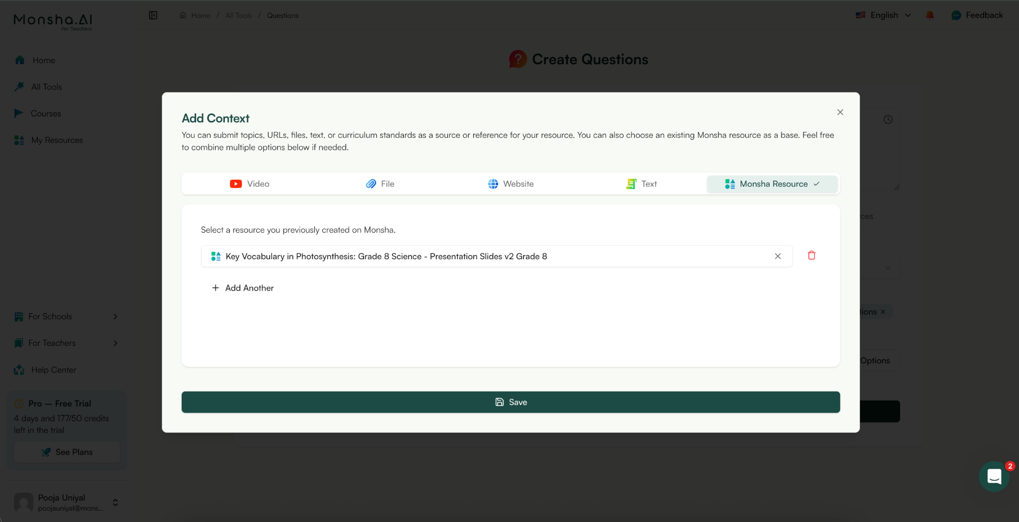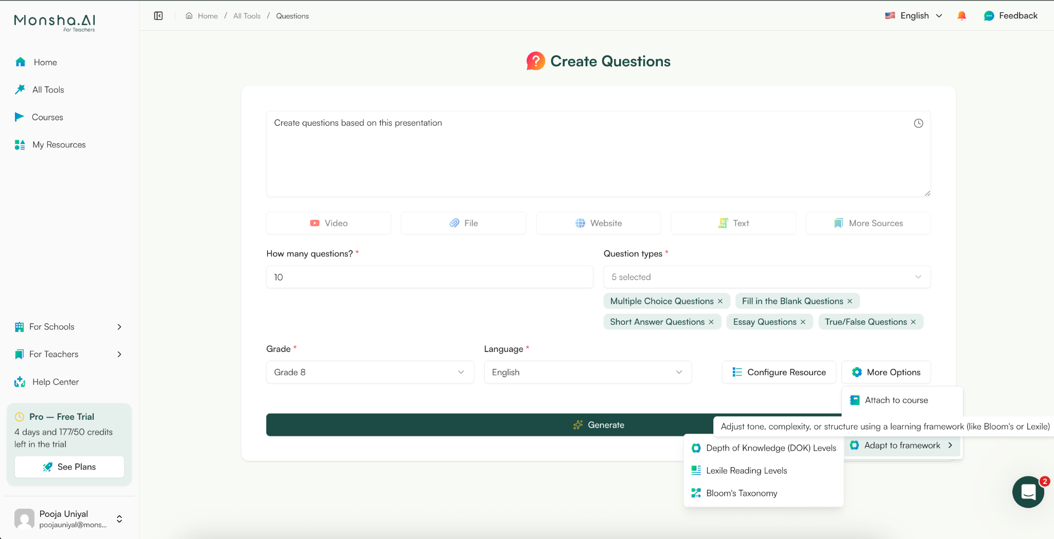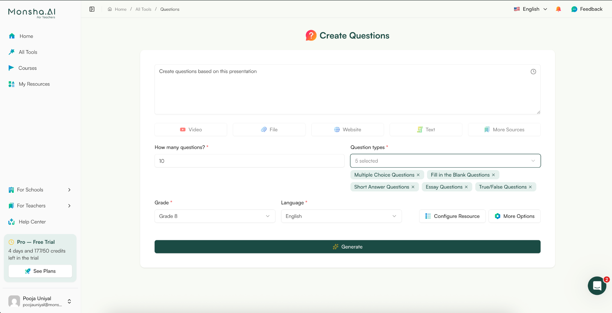 Monsha isn’t just an AI quiz generator. It’s a tool designed to convert one teaching resource into another - slides into quizzes, content into questions, lessons into assessments - while preserving instructional intent.