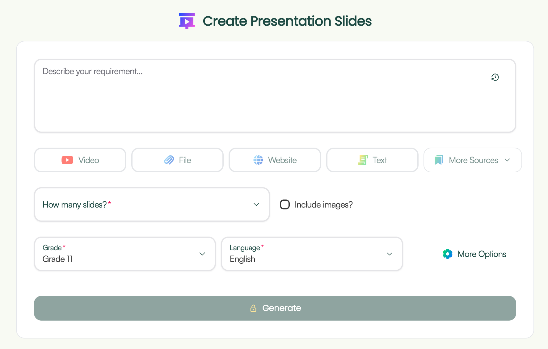 Creating good presentation slides takes more time than it should. You’re not just putting text on slides, you’re thinking about what your students will understand, how ideas should flow, and whether the slides will actually support your lesson instead of distracting from it.