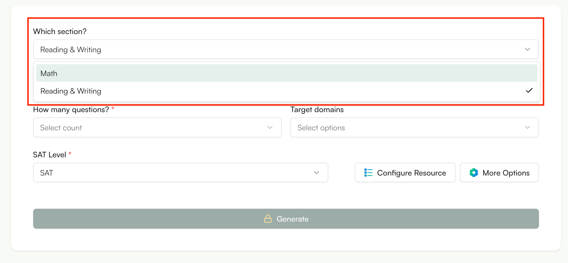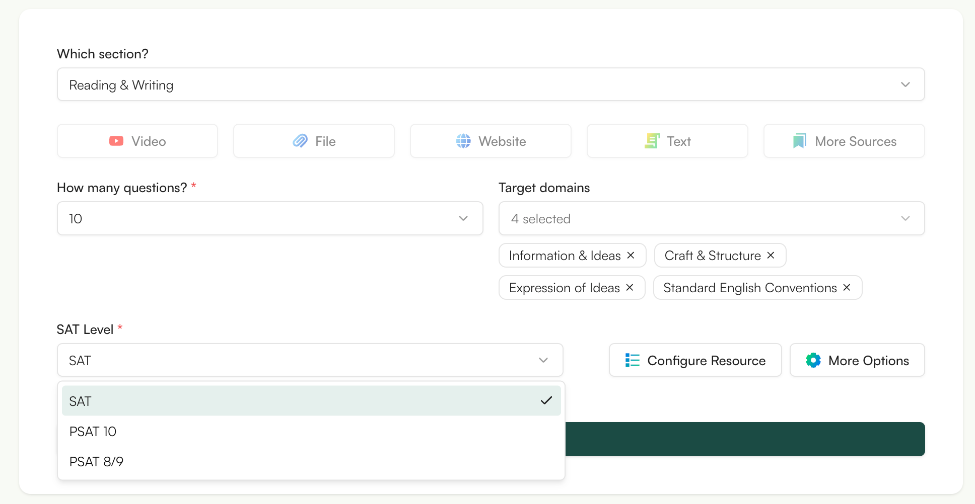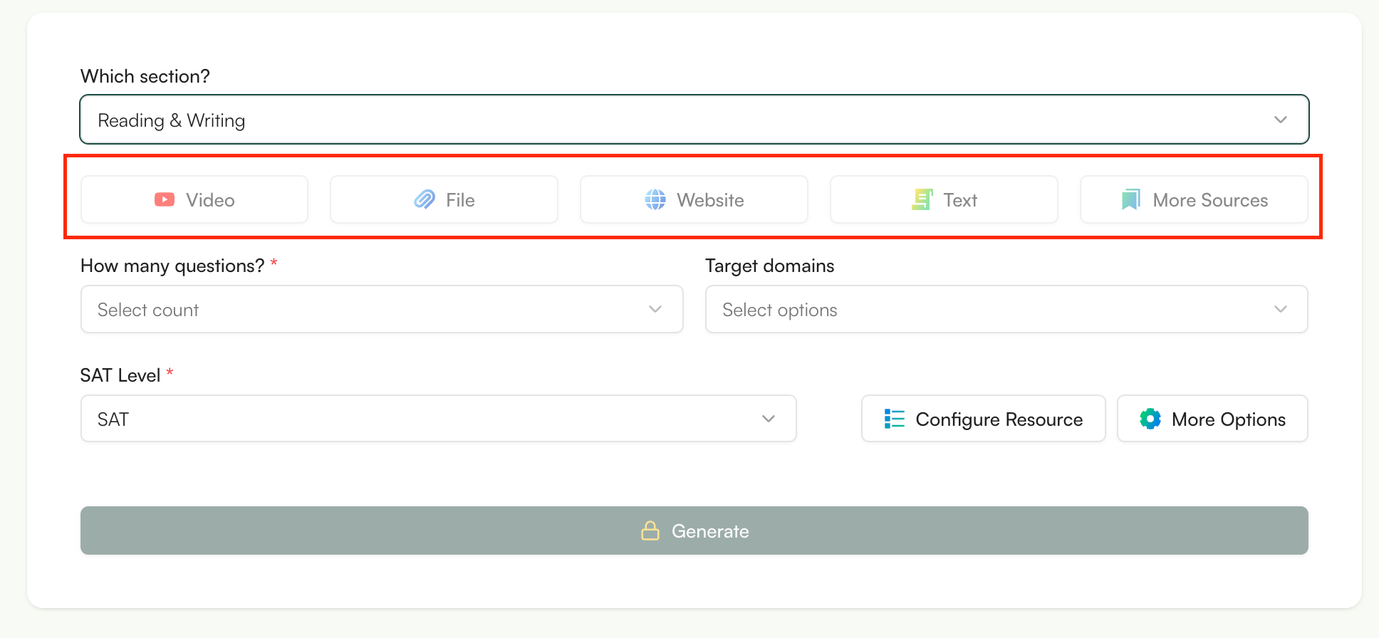This allows you to generate SAT-style questions based on what you actually taught, not random practice content.
