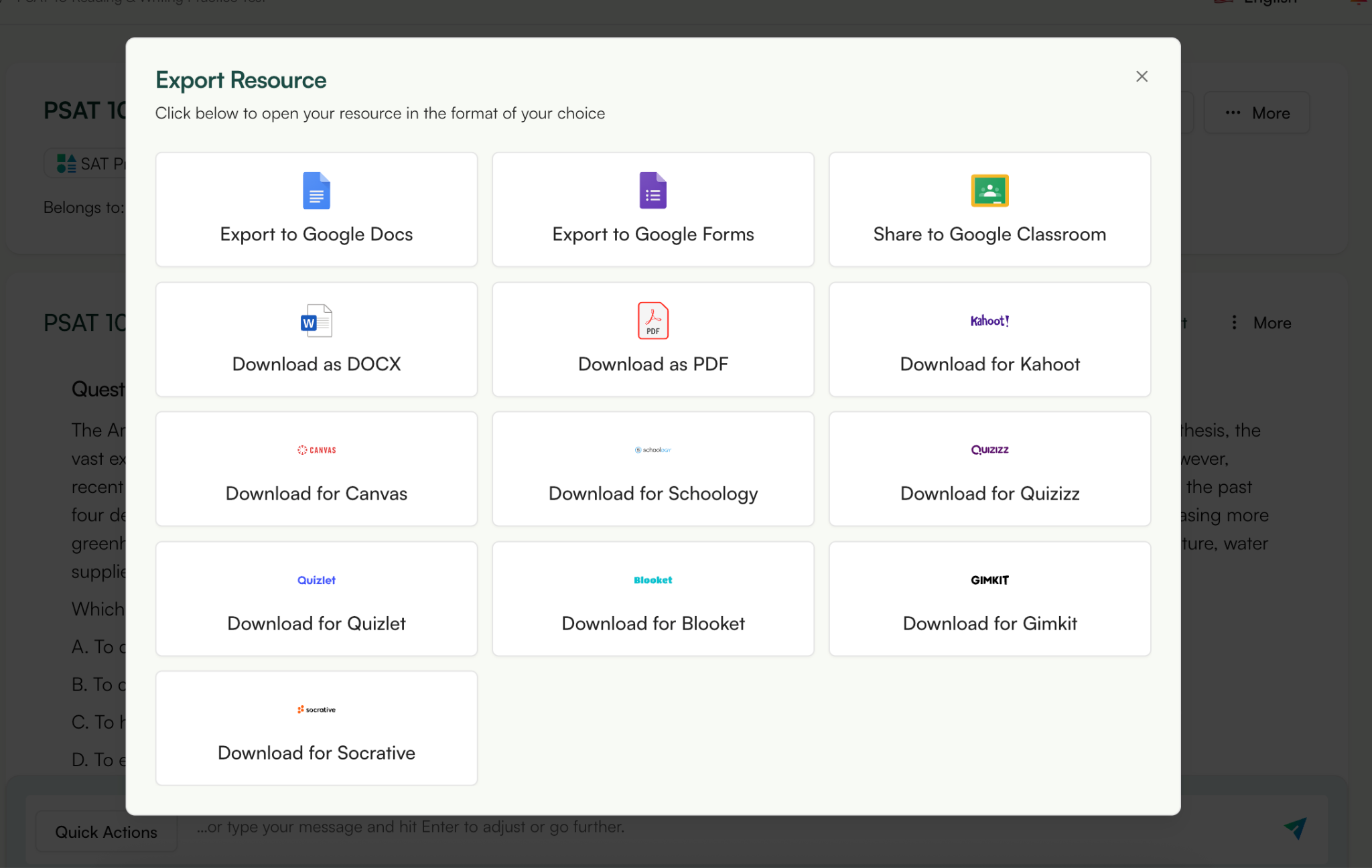 Within seconds, you have a ready-to-use SAT practice set, no manual question writing required.