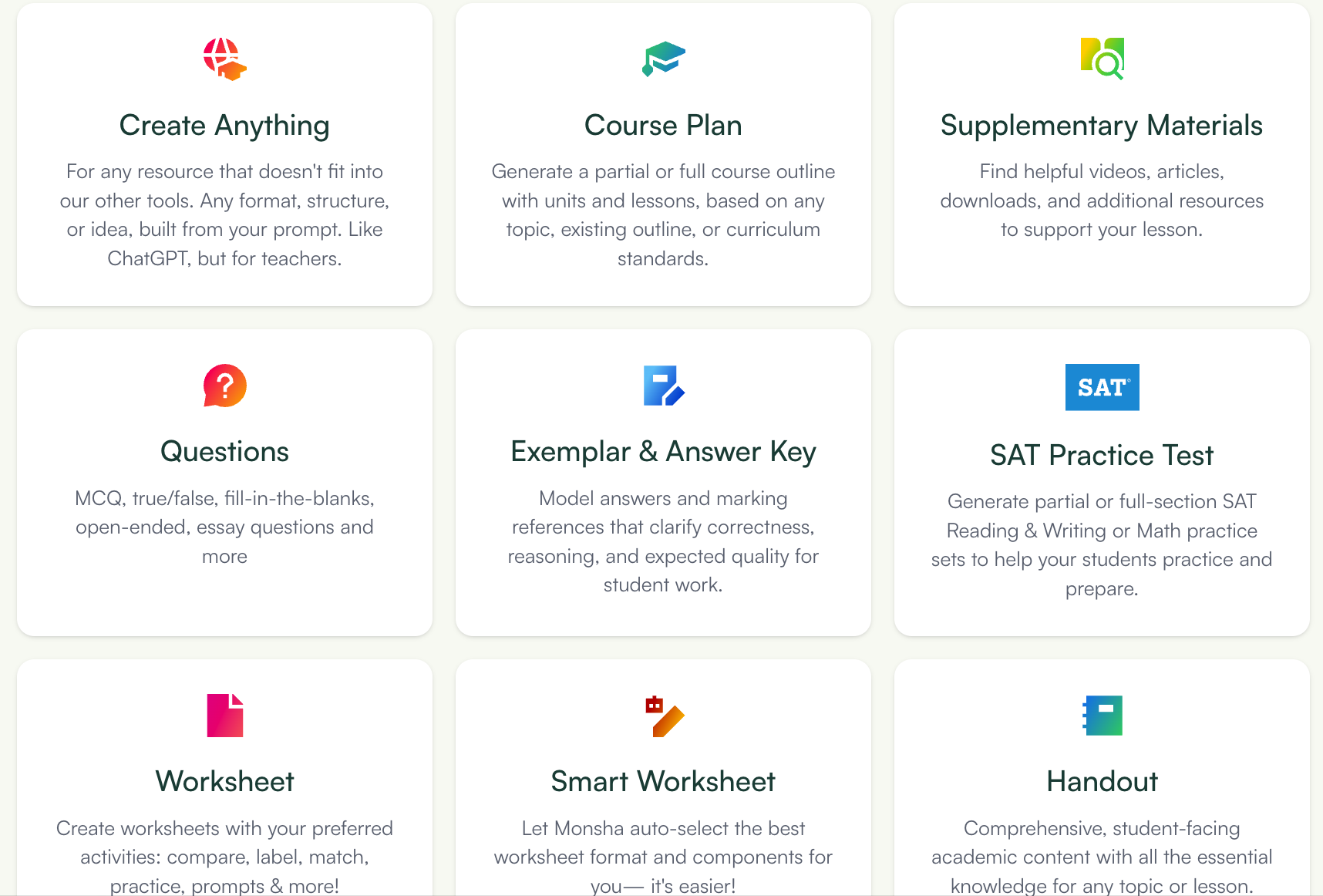 Join thousands of educators who use Monsha to plan courses, design units, build lessons, and create classroom-ready materials faster. Monsha brings AI-powered curriculum planning and resource creation into a simple workflow for teachers and schools.